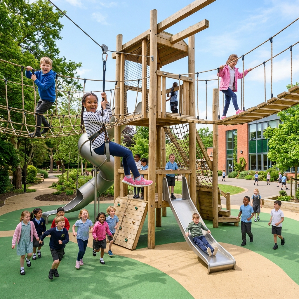 Safe, child-friendly equipment where students develop motor skills and social bonds through active play.